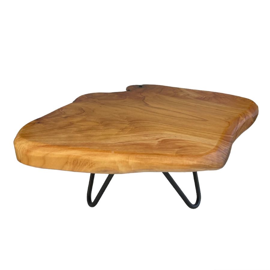 Decoração de Madeira em formato orgânico e pés em metal preto