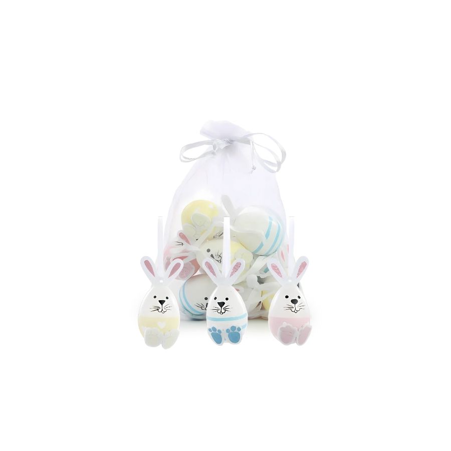 Os Mini Ovos de Páscoa Sortido com Formato de Coelhinhos para Pendurar são perfeitos para criar um ambiente festivo e encantador.