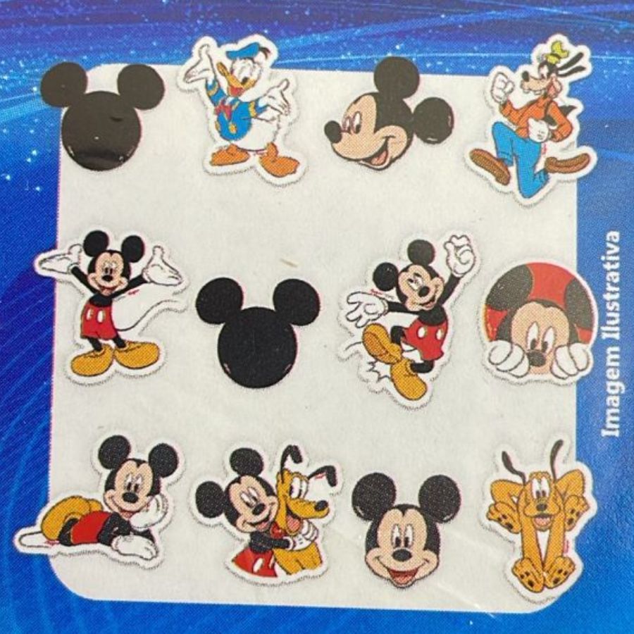 Miniaturas temáticas do Mickey Mouse, perfeitas para decorar festas e mesas. Pacote com 12 unidades.