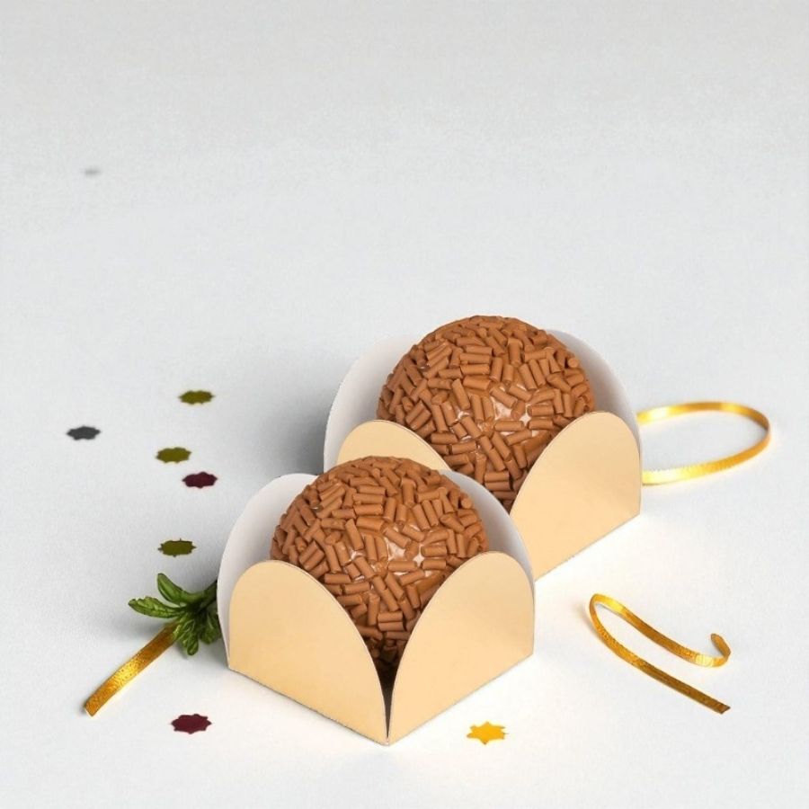O Mini Porta Forminha - Ouro - 3x3x2,25cm é ideal para organizar e valorizar doces, trufas, brigadeiros e bombons em festas e eventos. Com acabamento dourado, adiciona um toque elegante e sofisticado à mesa de doces.