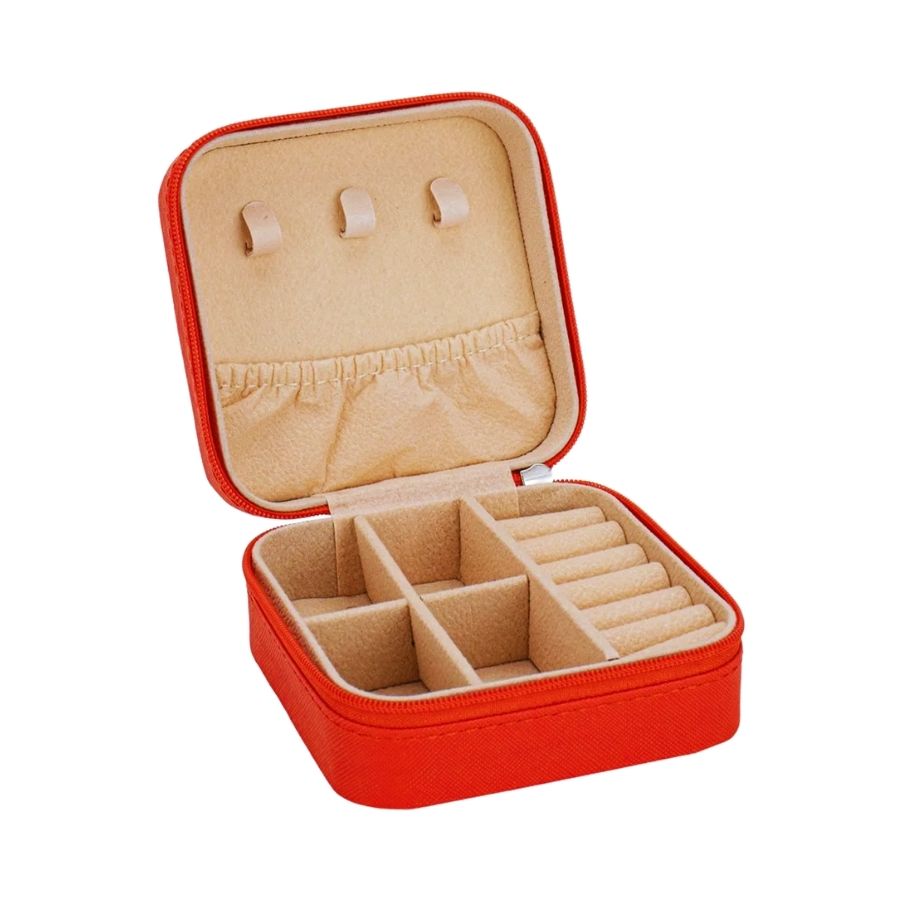 O Mini Porta Jóias Portátil – Vermelho Escuro é ideal para manter suas joias organizadas com elegância e praticidade. Seu formato compacto e funcional permite armazenar brincos, anéis, colares e outros acessórios de forma segura, sendo perfeito para o uso diário ou em viagens.