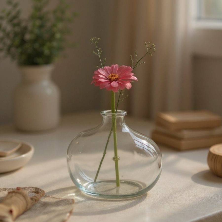 Produzido em vidro soprado e feito à mão, o vaso possui acabamento transparente que valoriza qualquer arranjo e ilumina o espaço com sutileza. Com medidas de 10x11x6cm e gargalo estreito, o design orgânico e minimalista permite que a peça seja usada em mesas, aparadores, prateleiras, estantes ou cantos decorativos, sendo também uma excelente opção para presentear quem aprecia detalhes sofisticados e artesanais na decoração.
