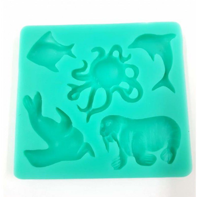 Molde de silicone quadrado com 5 cavidades de moldes sendo animais marinhos diferentes Os moldes de silicone da Prime Chef são produzidos especialmente para a confeitaria, 100% alimentícios (Atóxicos). Possuem aplicações em alta definição deixando seus trabalhos perfeitos! Os moldes podem ir ao Forno e Geladeira e são ideais para fazer rendas de açúcar; biscoitos; doces finos, bolachas temáticas, balas de gelatina e muito mais... Pode ser usado para a linha culinária e outros fins.
