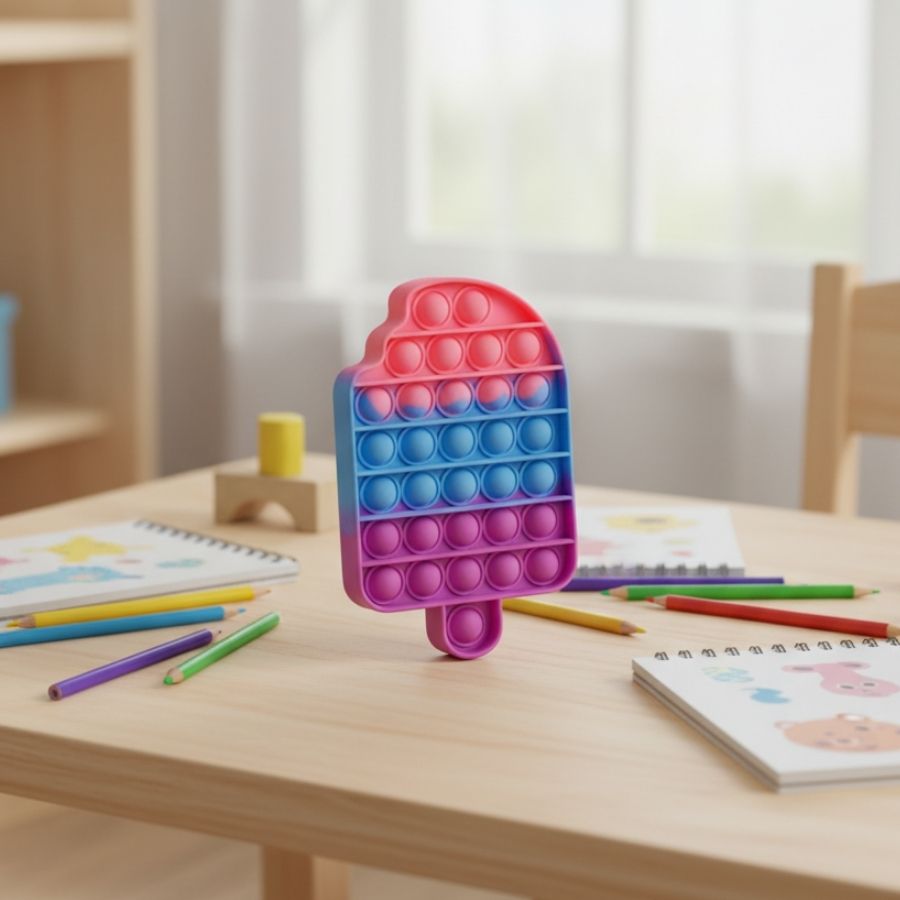 O Molde de Silicone Pop It Sorvete/Picolé 01 Unidade é resistente, versátil e ideal para chocolates, doces, artesanatos e lembrancinhas criativas.