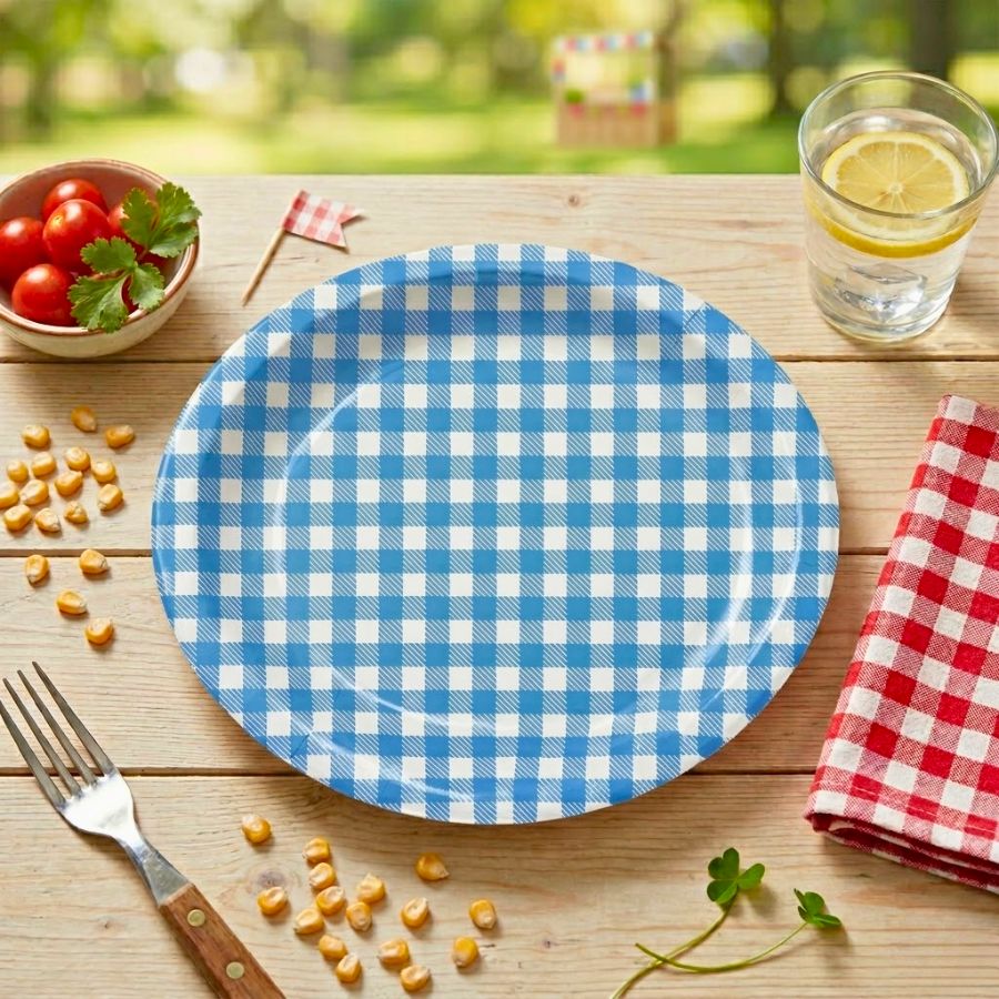 Prato de Papel Xadrez Azul Escuro -18 cm - Festa Junina - 08 unidades - Kaixote - Rizzo