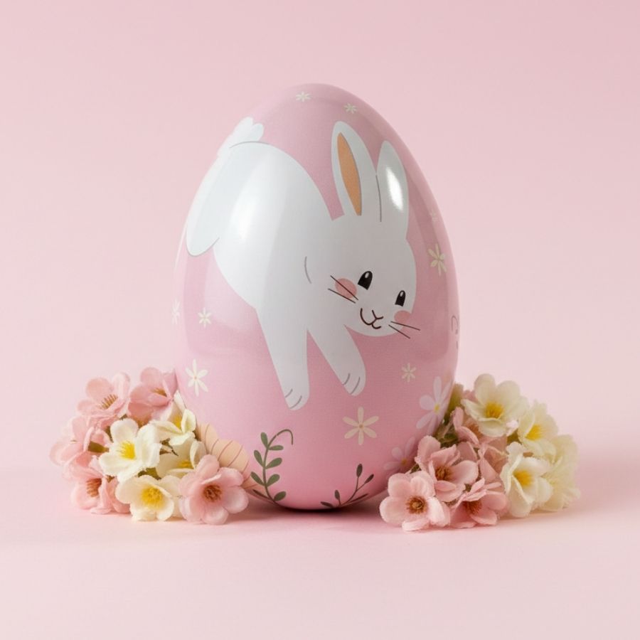 Este ovo de metal se destaca pelo design temático exclusivo, pelo acabamento refinado e pela estrutura resistente, garantindo durabilidade e excelente apresentação. Sua versatilidade permite ser utilizado como embalagem decorativa para chocolates, doces, lembrancinhas e pequenos presentes, além de compor vitrines comerciais, aparadores, cenários temáticos e centros de mesa. A estampa Jardim do Coelho agrega valor artesanal e estético, tornando o produto final mais atrativo, elegante e memorável para o consumidor.