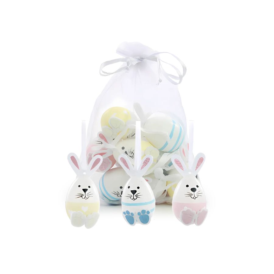 Os Ovos de Páscoa Sortido com Formato de Coelhinhos para Pendurar são perfeitos para criar um ambiente festivo cheio de charme e criatividade.