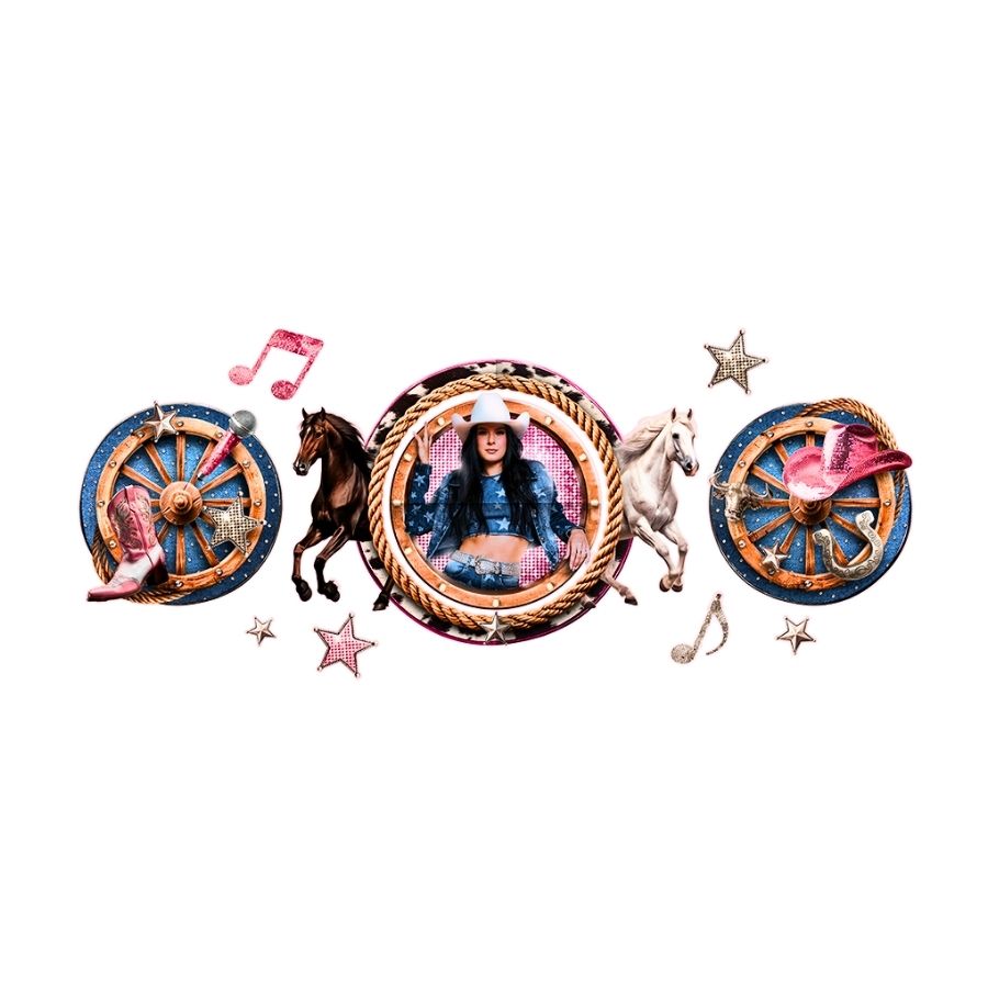 Perfeito para ser colocado na parede, o painel decorativo vai transformar o ambiente da festa, dando um toque especial e alegre, destacando o tema Ana Castela de maneira criativa e vibrante.