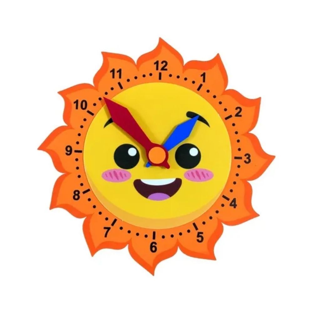 O Painel Decorativo em EVA - Relógio Sol é uma peça lúdica e educativa, perfeita para o ambiente escolar. Em formato de sol sorridente, ele possui ponteiros móveis que permitem ensinar noções de horário de forma prática e visual. Sua aparência colorida e divertida chama a atenção das crianças, tornando o aprendizado mais leve e envolvente.