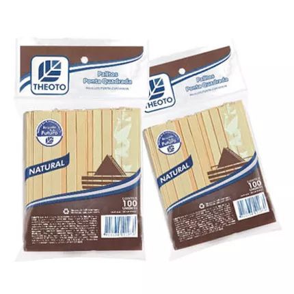 Palito de madeira Theoto, em formato com pontas quadradas, ideais para os tradicionais sorvetes de palito, pão de mel de palito, cake pop, entre outros.