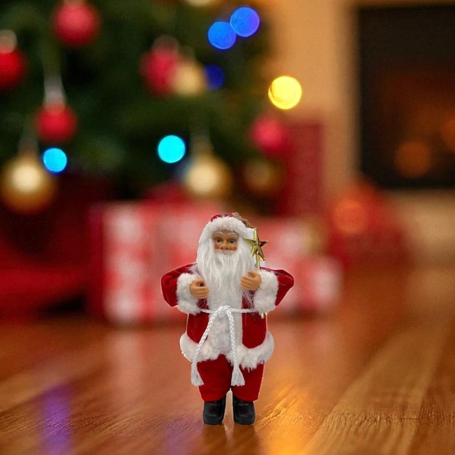O Papai Noel Decorativo em Pé com Varinha de Estrela 20cm é um enfeite detalhado, versátil e encantador, ideal para decorar, compor cenários natalinos e celebrar o espírito do Natal com alegria e charme.