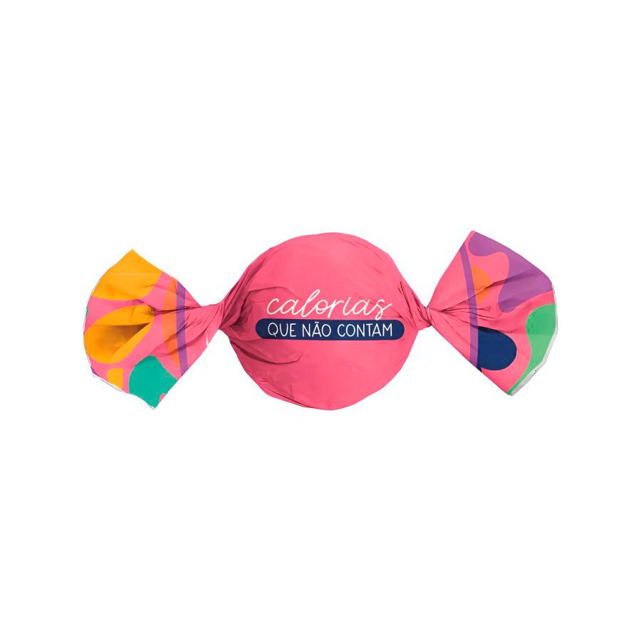 Embalagem para trufas e bombons na cor Rosa escrito: Calorias que não contam.