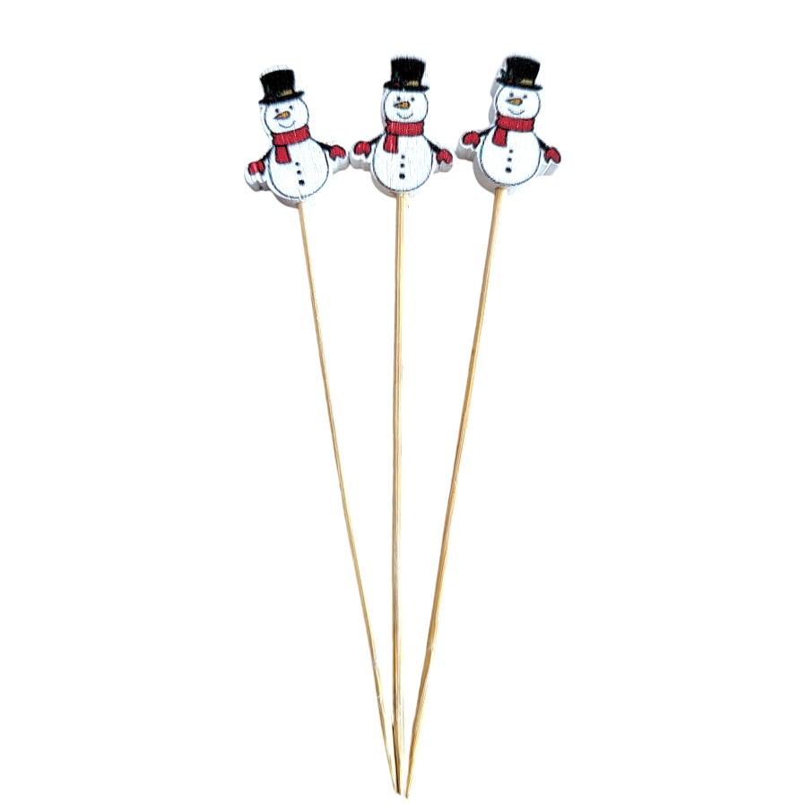 Decore sua mesa de Natal com muito charme e criatividade! Nossos picks decorativos de boneco de neve são perfeitos para enfeitar bolos, cupcakes e outros doces, deixando sua festa ainda mais especial. Feitos com bambu e plástico, são resistentes e duráveis.