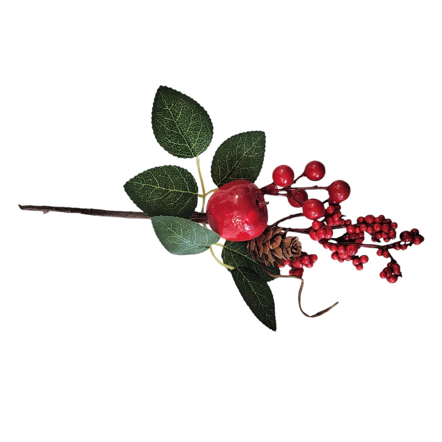 Com sua combinação clássica de cores, o pick decorativo é ideal para criar uma atmosfera acolhedora e vibrante. As frutinhas vermelhas destacam-se entre as folhas verdes, trazendo vida e cor à decoração. Use-o para enriquecer o visual natalino da sua casa, adicionando um toque de elegância e tradição à sua celebração.