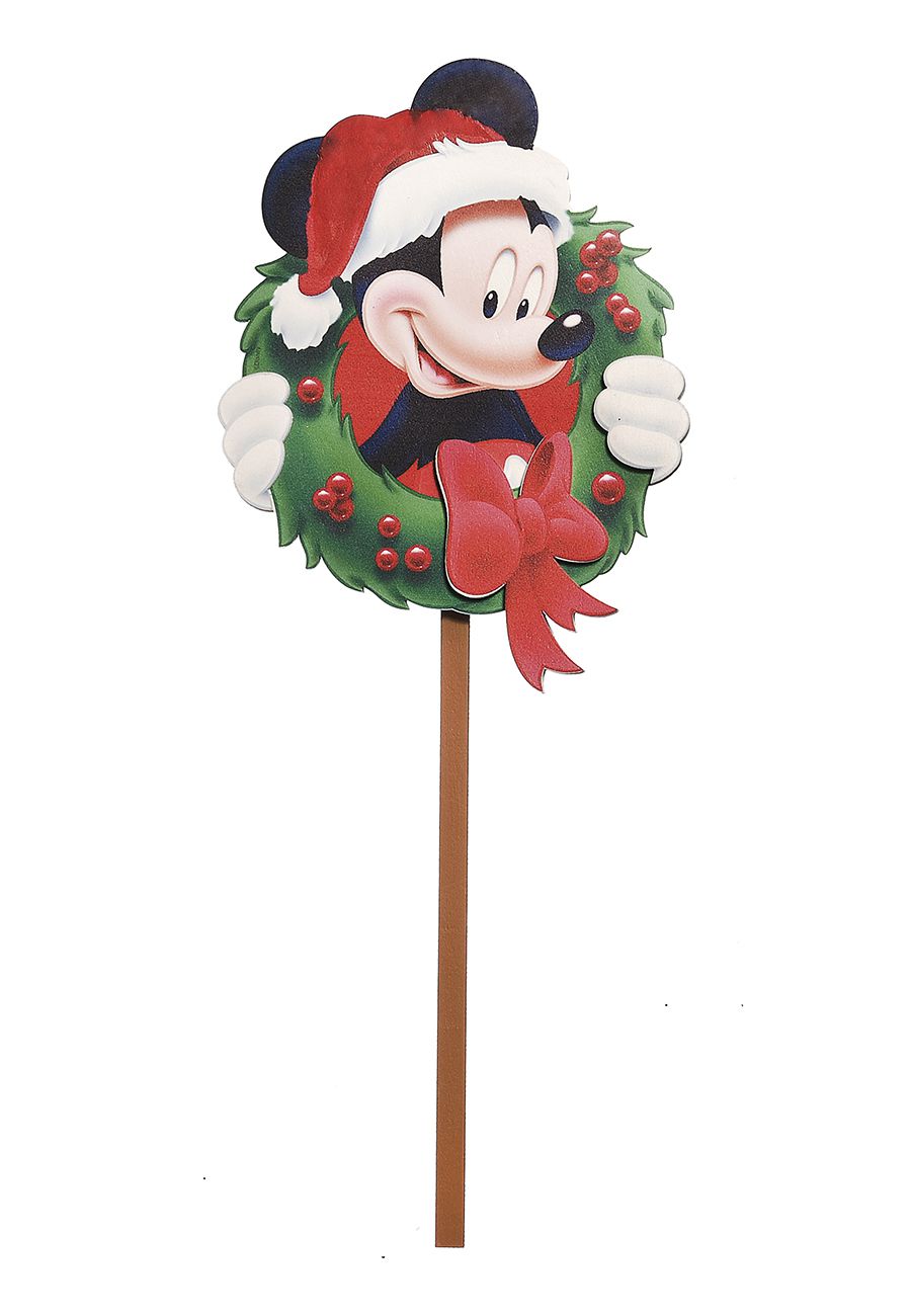 Pick de madeira com design do Mickey Mouse em guirlanda, ideal para decoração de jardim no Natal.
