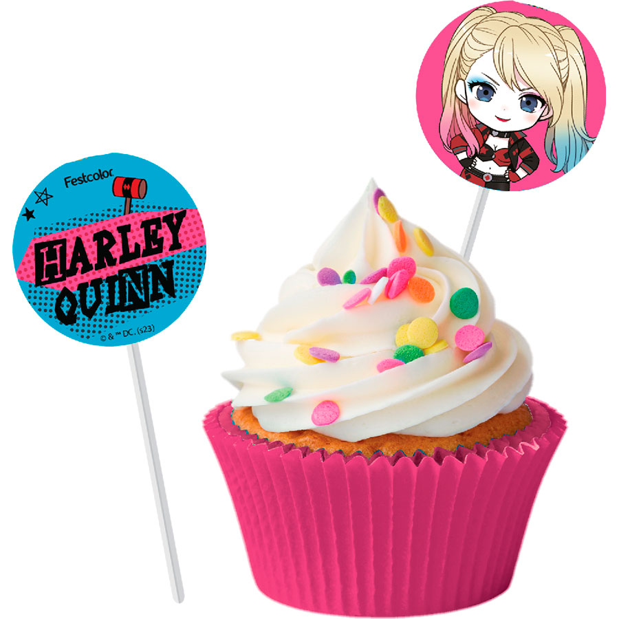Um pacote contendo 8 unidades de pick decorativo do tema Arlequina