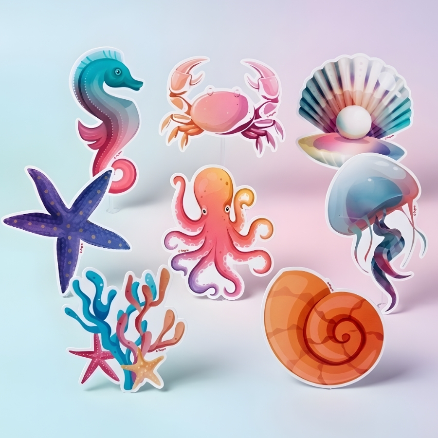 O Pick Para Doces - Fundo do Mar é a escolha ideal para deixar sua mesa mais temática e encantadora. Inspirado no universo marinho, ele valoriza a apresentação dos doces, trazendo um toque criativo e cheio de cor para a decoração.