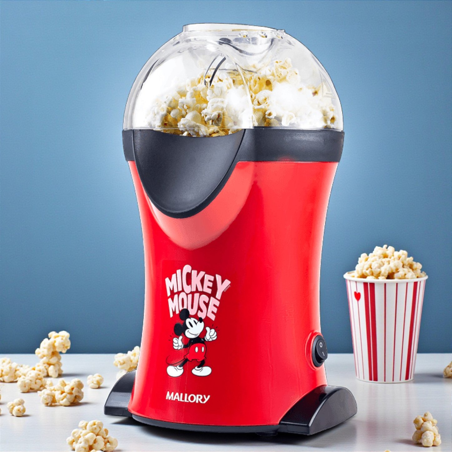 A Pipoqueira Mickey Mouse Disney vermelha 127V da marca Mallory transforma o preparo da pipoca em um momento prático, divertido e cheio de estilo. Inspirada no universo do Mickey Mouse Disney, o design icônico agrega charme à cozinha e valoriza o ambiente com um visual temático marcante. O funcionamento sem óleo permite preparar pipocas sequinhas em aproximadamente dois minutos, tornando o uso simples e funcional para o dia a dia. O bocal expedidor direciona a pipoca diretamente para o recipiente, evitando desperdícios e facilitando o serviço. O copo medidor incluso auxilia na dosagem exata do milho e também pode ser utilizado para derreter manteiga no compartimento superior, tornando a experiência ainda mais prática.
