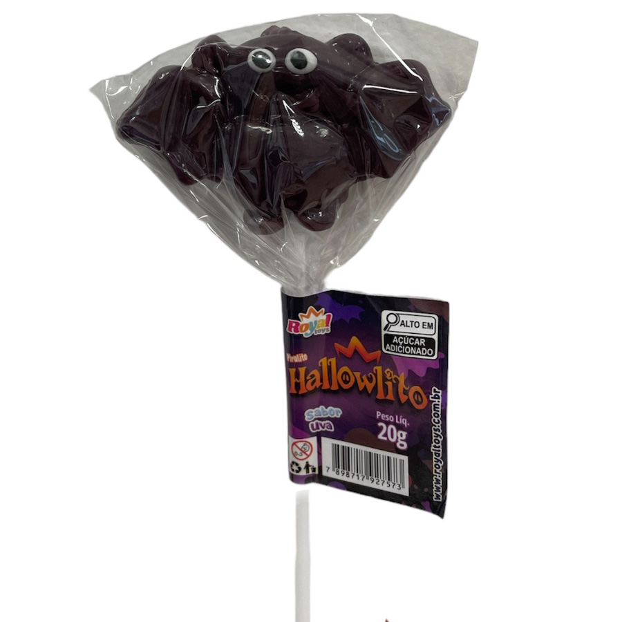 Pirulito Hallowlito em formato de morcego, sabor uva