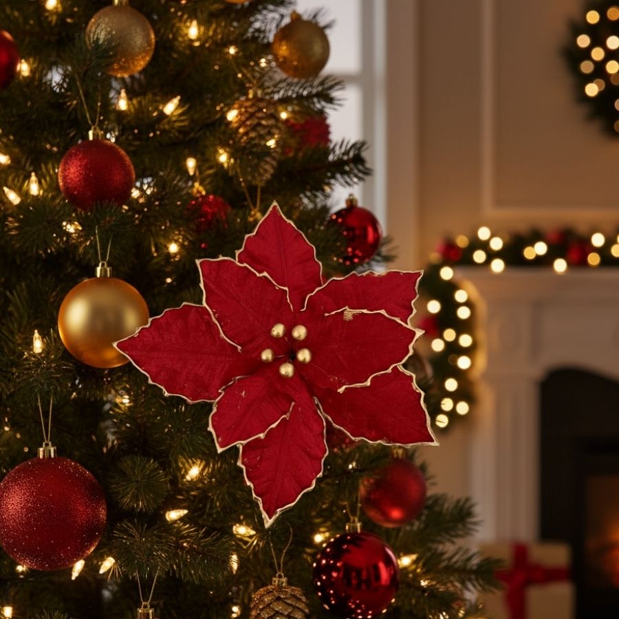 A Poinsétia Decorativa - Camurça - Marsala e Dourado - 39x30cm da Cromus é uma peça elegante e sofisticada, ideal para valorizar decorações natalinas e projetos artesanais. Produzida em camurça de alta qualidade com acabamento em dourado e tons marsala, proporciona destaque em árvores de Natal, guirlandas, arranjos de mesa e composições decorativas. Com dimensões de 39x30cm, adiciona um toque luxuoso e acolhedor a qualquer ambiente festivo.