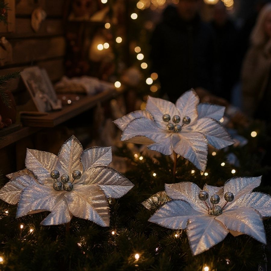 A Poinsétia Decorativa Magnólia Azul Claro é delicada, elegante e moderna, ideal para criar decorações natalinas sofisticadas e encantadoras.