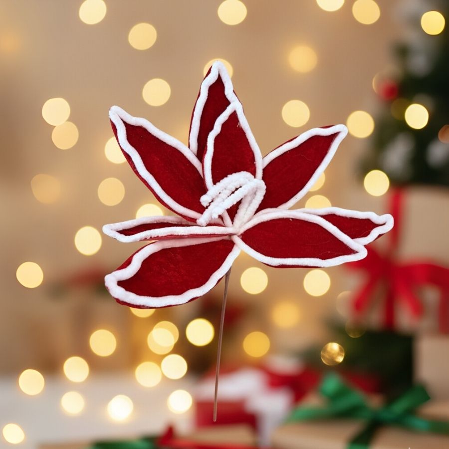 A Poinsétia Decorativa - Veludo - Vermelho e Branco - 41x33x13cm é um enfeite clássico que traz sofisticação e encanto à sua decoração natalina. Produzida em veludo, combina as cores vermelho e branco, resultando em um visual festivo e elegante, ideal para árvores, guirlandas, arranjos e composições de mesa.