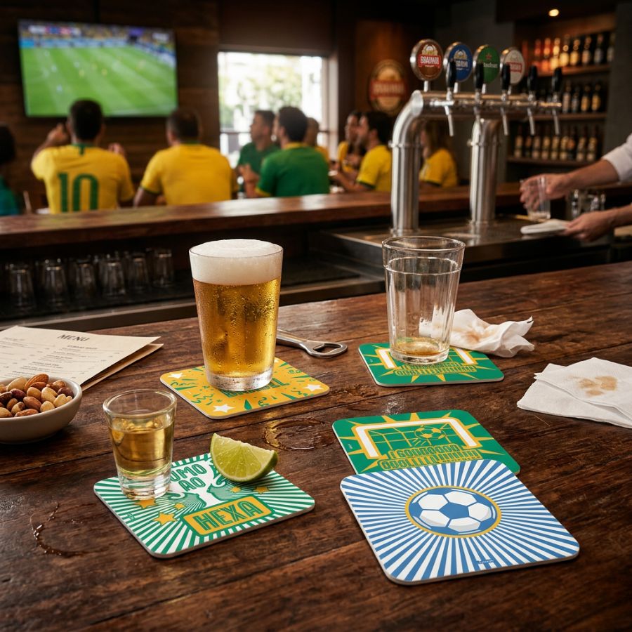 Além de funcional, o Porta Copo Copa do Mundo ajuda a criar um ambiente mais temático e organizado para receber amigos e familiares nos dias de jogo. Perfeito para festas de futebol, aniversários com tema esportivo, bares, restaurantes e encontros para assistir aos jogos da seleção, ele contribui para uma decoração criativa e cheia de espírito de torcida.