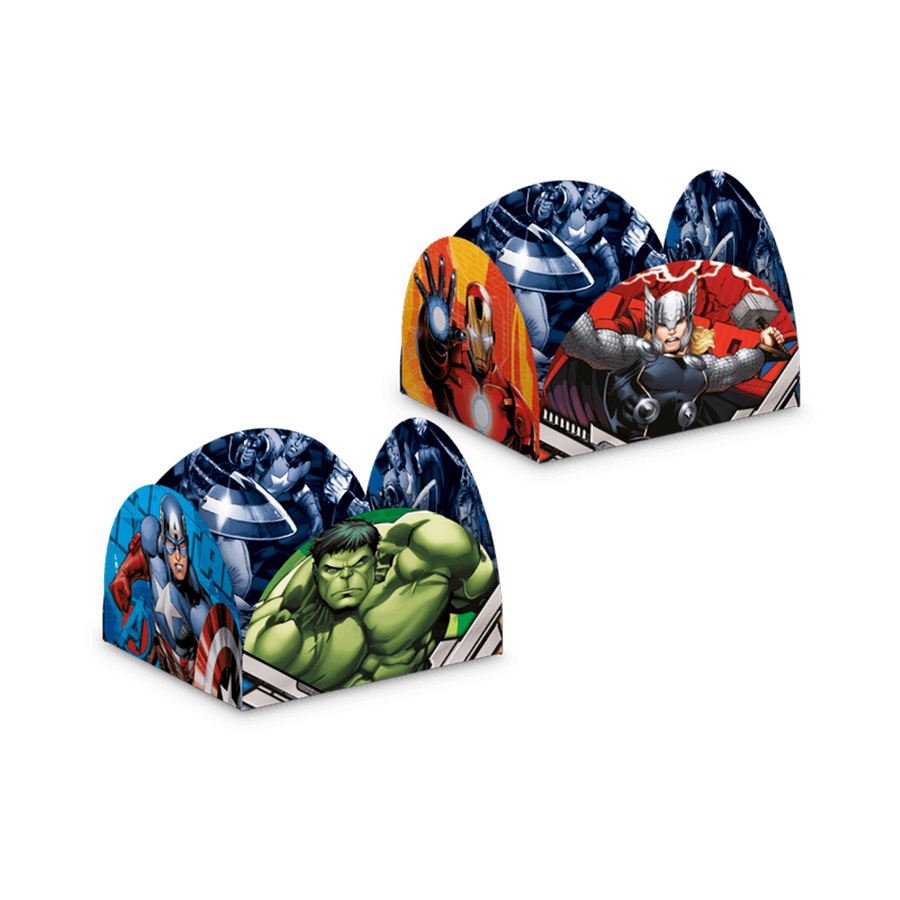 Forminha para pequenos doces em papel off-se, decorado com tema da Avangers.