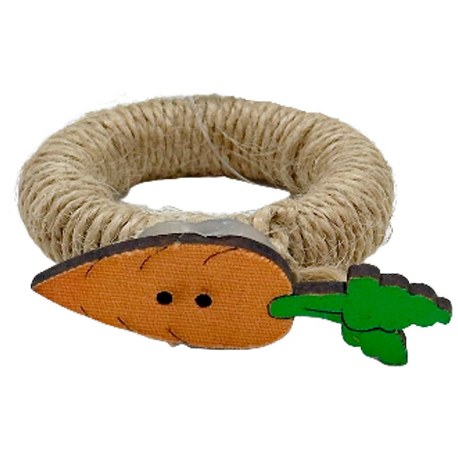 Porta Guardanapo em formato de anel coberto em juta com uma cenoura de MDF colado