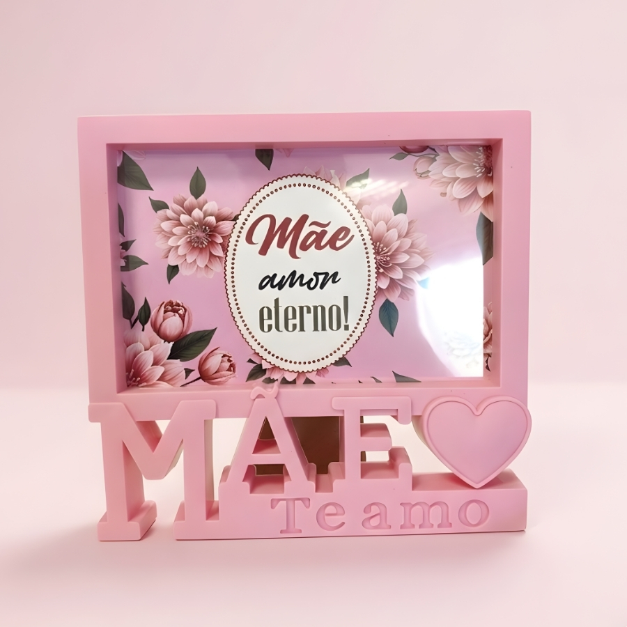 Ideal para surpreender em datas especiais ou demonstrar amor em qualquer momento do ano, esse porta-retrato une sensibilidade e presença. A frase “Mãe Amor Eterno” reforça a importância desse vínculo único, enquanto o tom rosa claro transmite leveza e ternura à decoração. Um presente simbólico, cheio de intenção e significado.