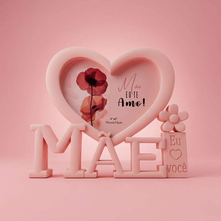 O Porta Retrato Salmão Com Moldura de Coração - Mãe Eu Te Amo - 18x21cm é uma peça delicada e cheia de significado, perfeita para eternizar momentos especiais com muito carinho. Ideal para expor fotos inesquecíveis, ele transforma lembranças em uma decoração afetiva, charmosa e emocionante. Com a mensagem “Mãe Eu Te Amo”, é uma excelente escolha para presentear no Dia das Mães, aniversários ou ocasiões especiais, trazendo um toque de amor e personalidade ao ambiente.