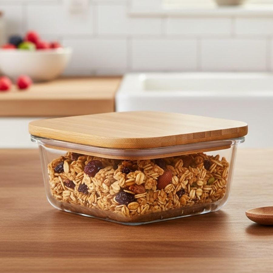 O Pote de Vidro Hermético com tampa de bambu é uma peça funcional e elegante, pensada especialmente para a cozinha, unindo organização e home decor. Seu formato quadrado com cantos suavemente arredondados oferece um visual moderno e delicado, combinando a transparência do vidro com o toque natural da madeira de bambu.