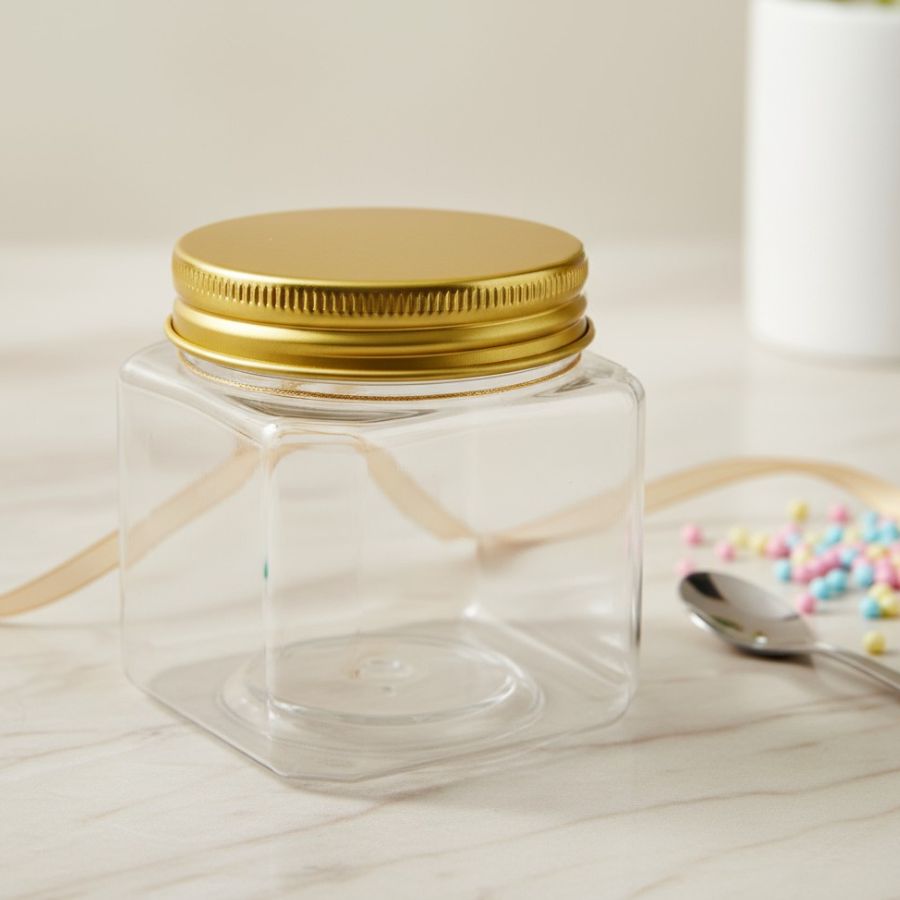 Pote Quadrado de Plástico com Tampa Dourada - 6x5,5cm - 1 unidade - Cromus - Rizzo