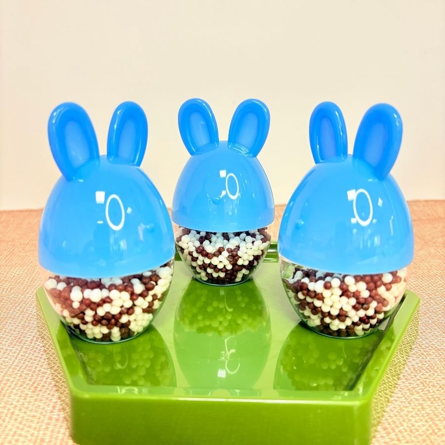 O Potinho de Páscoa com Orelha de Coelho - Azul - 9x5,5cm é a escolha ideal para quem deseja adicionar um toque de criatividade e alegria ao presente de Páscoa.