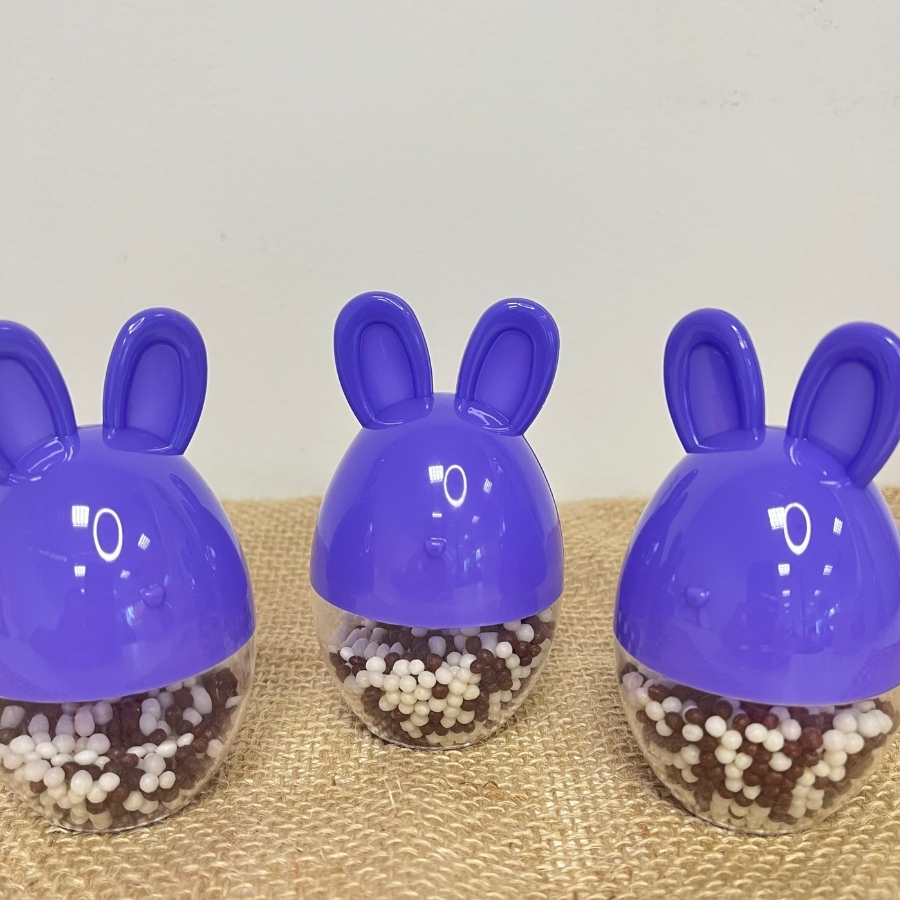 Com 9x5,5cm, esse potinho é compacto e perfeito para armazenar mini ovos de chocolate, doces, confeitos e lembrancinhas. Sua cor roxa vibrante adiciona um toque moderno e alegre, combinando perfeitamente com decorações festivas. Ideal para presentes personalizados, kits de Páscoa e lembranças para amigos, familiares e clientes.