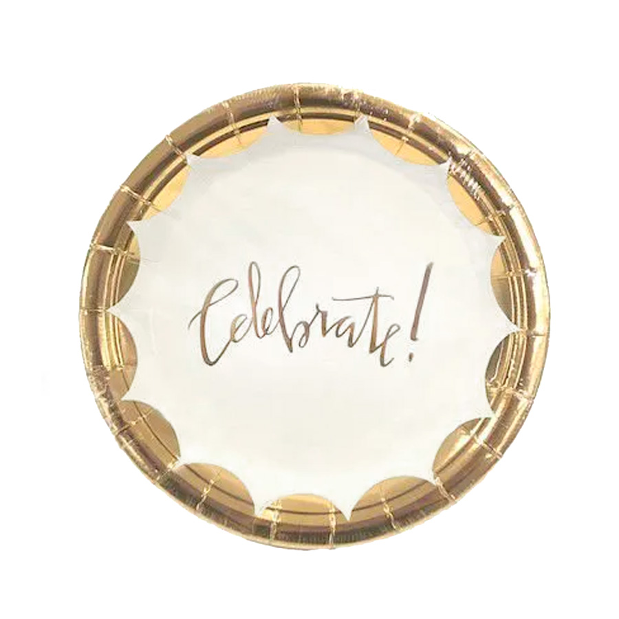Prato em Papel Biodegradável Celebrate Branco e Dourado 18cm - 10 unidades - Silverplastic - Rizzo Festas
