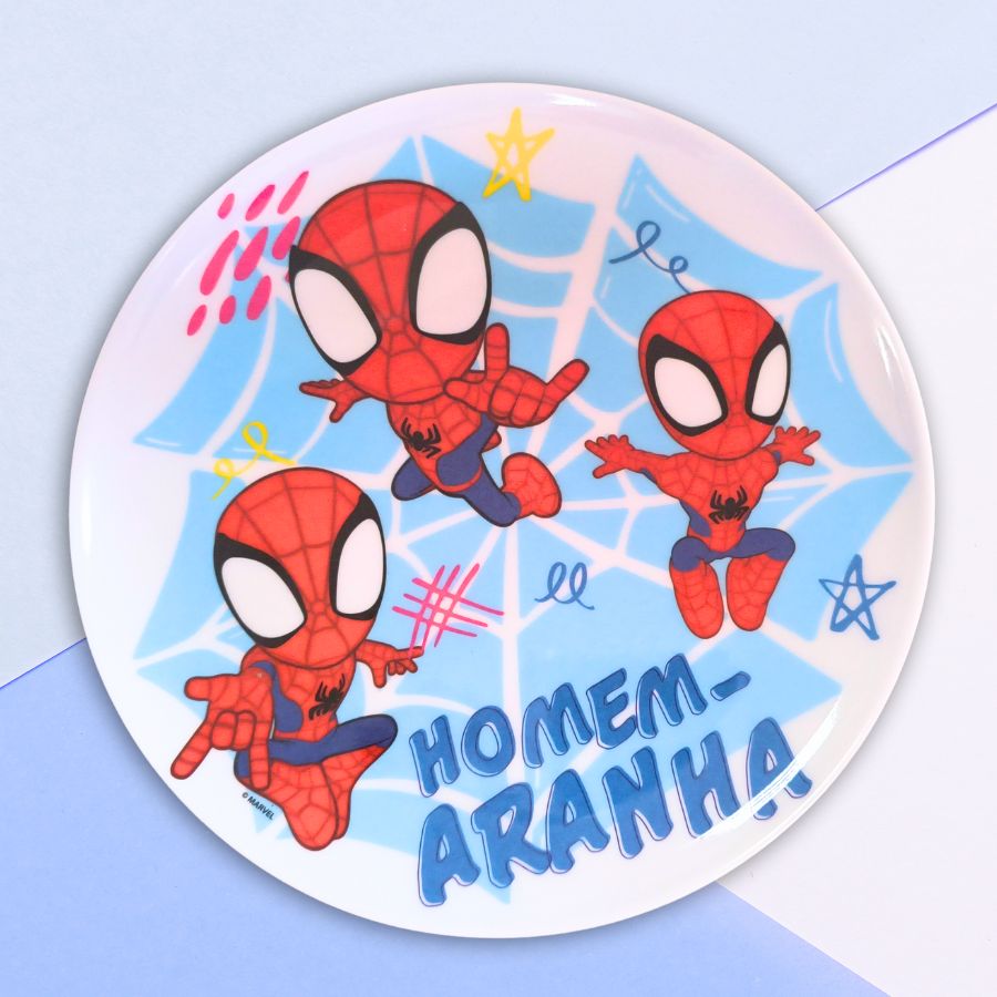 Além da funcionalidade no uso cotidiano, o Prato Raso de Melamine inspirado no Homem-Aranha Disney se destaca pela estética marcante e pela versatilidade. A peça pode ser combinada com outros utensílios infantis para formar conjuntos temáticos de café da manhã, almoço ou jantar. Muito utilizado como prato infantil raso, prato para refeição principal ou prato para lanche, o modelo também é ideal para mesas decoradas e festas infantis. Inspirado no Homem-Aranha Disney, o prato contribui para uma experiência mais agradável à mesa, incentivando hábitos alimentares mais leves e reforçando a presença do universo Disney no cotidiano das crianças.
