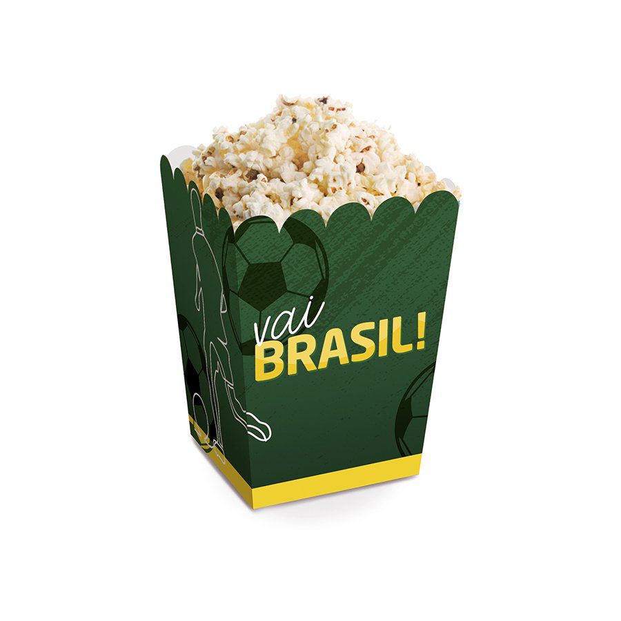 Caixa ou cesta de Pipoca com o tema do Brasil copa do Mundo. O pacote vem com 10 unidades.