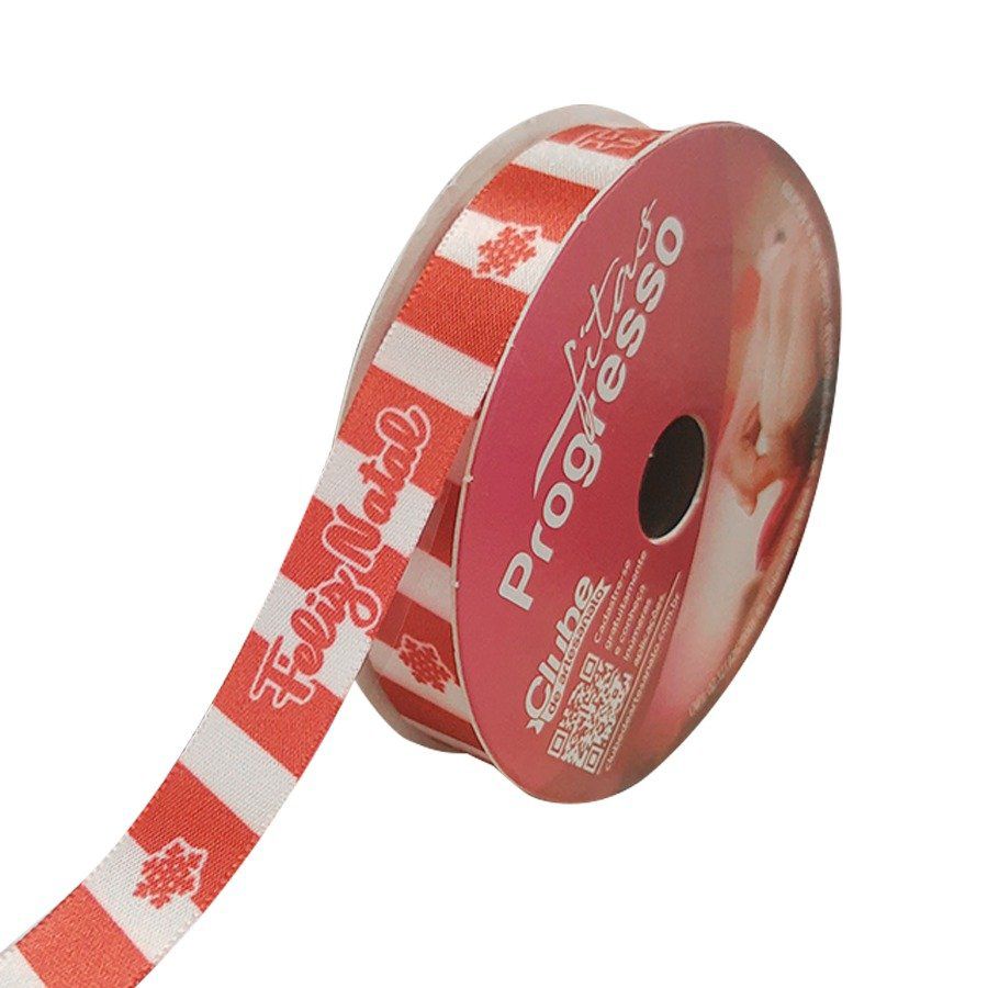 Fita de Cetim ECF 003TR 15mm -10m Cor 027 Feliz Natal Listrado - 01 unidade - Progresso - Rizzo