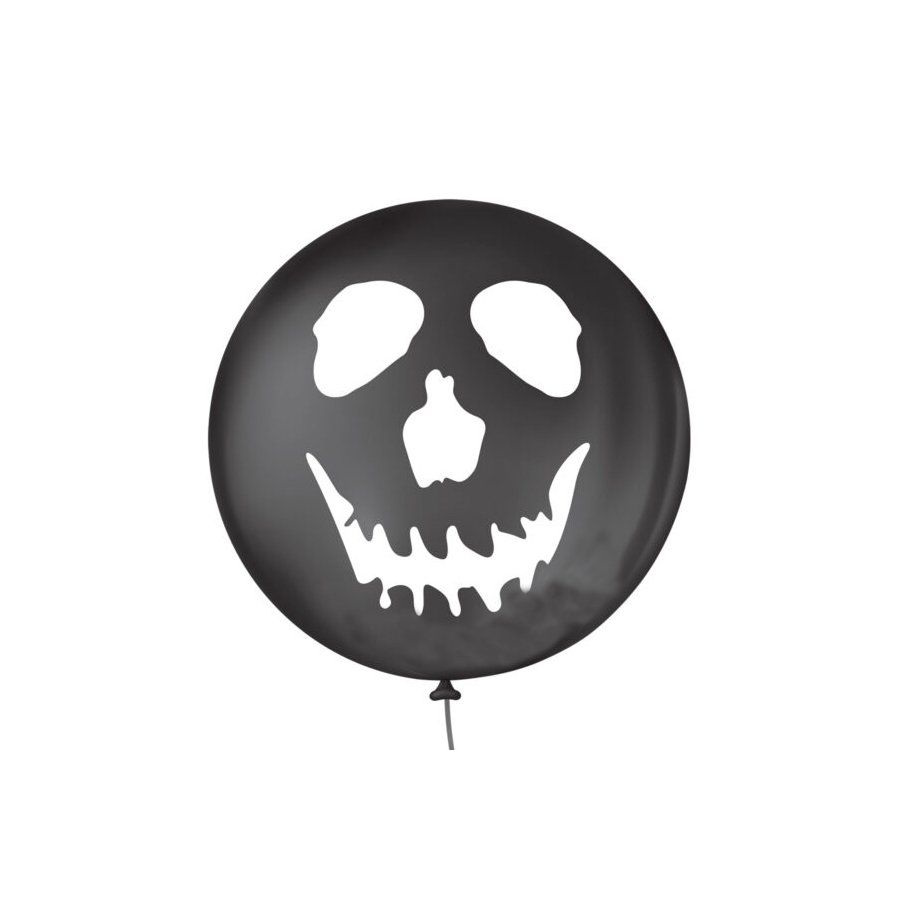 Balão de 5 Polegadas ou 12,7 Centímetros sortido com o tema Caveira nas Cores Preto Ebano (Maior Parte do Balão) e Branco (Parte do Rosto da Caveira). O Pacote contém 15 Unidades de balões VAZIOS.