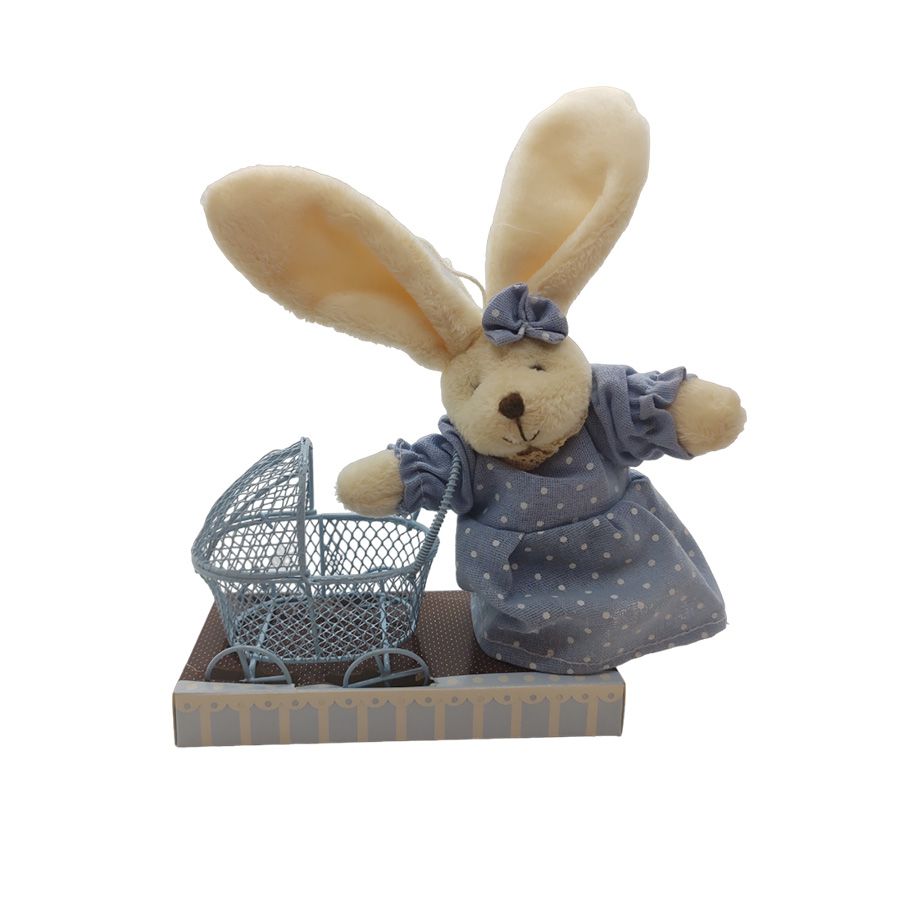 Coelho: 14,5 cm Largura x 27 cm Altura | Carrinho: 6,5 cm Largura x 10 cm Altura x 9 cm Comprimento
