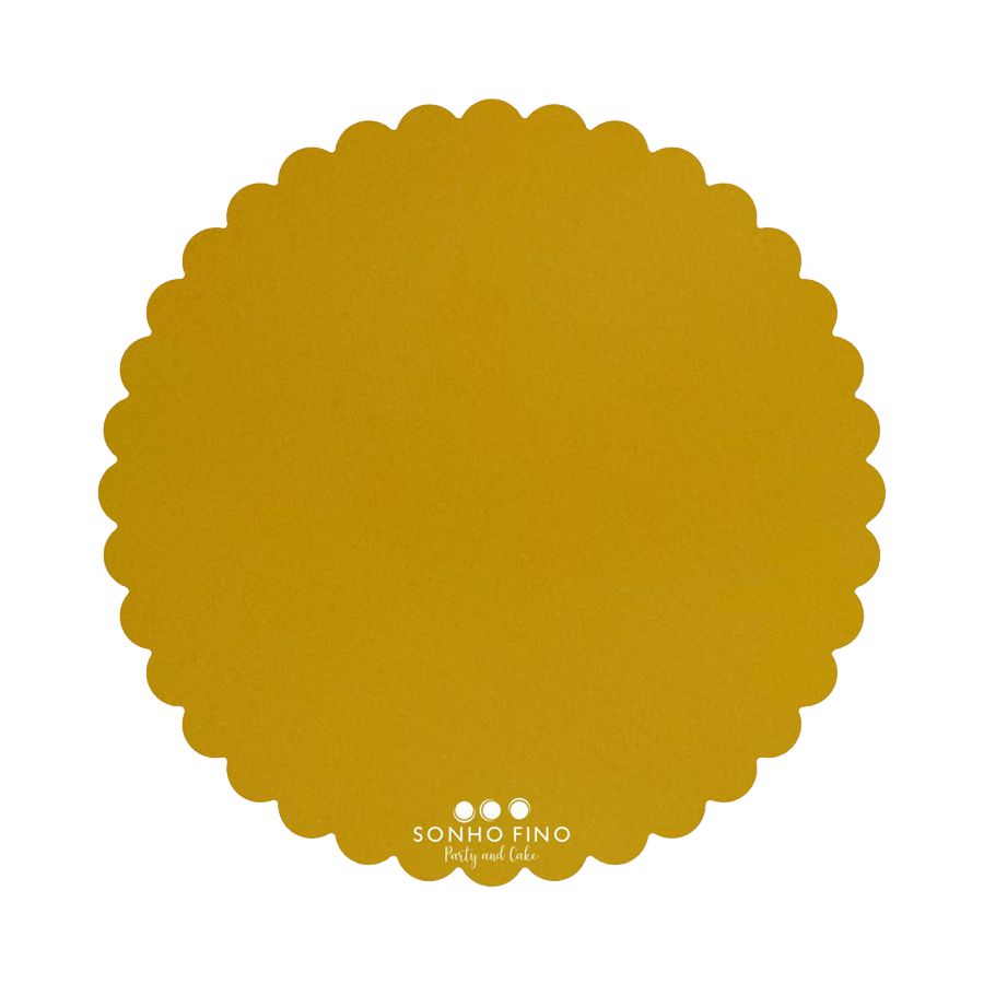 Disco em MDF com um lado cor Dourado e o outro de madeira crua.
