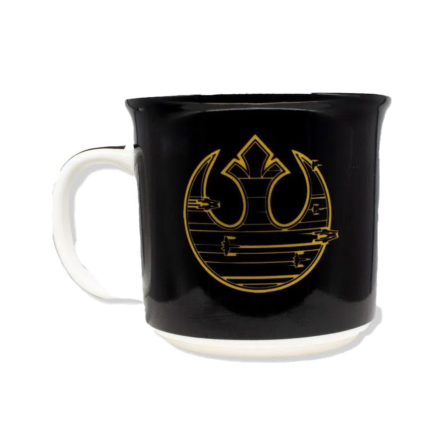 Possui 1 caneca tom de cerâmica no tema Star Wars com simbolo Nova República com capacidade de armazenar 350ml Cuidados e recomendações de uso: