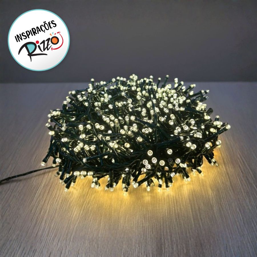 Cordão de LED Pisca Pisca Luz Quente Clara com Fio Verde 500 Leds com Strobos - 10m Bivolt - 1 unidade - Cromus - Rizzo