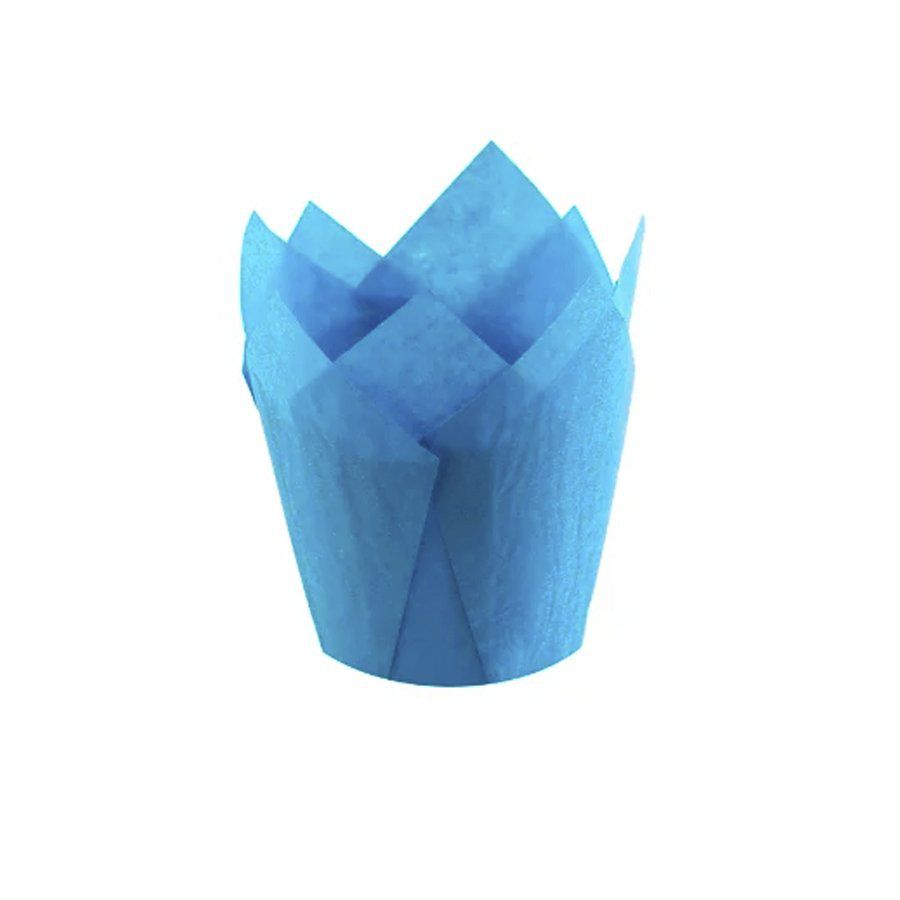 Forma Tulipa Forneáveis Azul - 25 Unidades - Ecopack - Rizzo Confeitaria