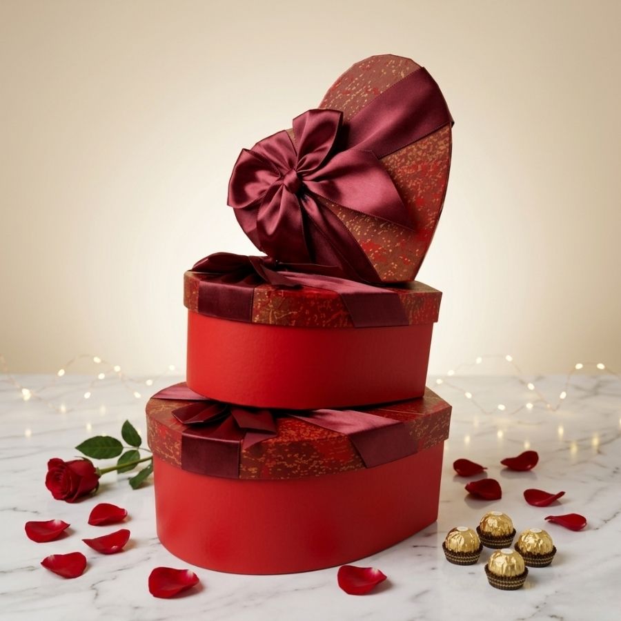 Composto por três caixas em formato de coração que se encaixam entre si, o conjunto proporciona um efeito surpresa encantador ao ser aberto, elevando a experiência de quem recebe. Ideal para ocasiões como Dia dos Namorados, aniversários, datas comemorativas e momentos especiais, ele valoriza qualquer presente, desde chocolates e doces finos até itens personalizados. Seu destaque está no design romântico, cor vermelho intenso e apresentação sofisticada, que transmitem paixão e cuidado em cada detalhe.