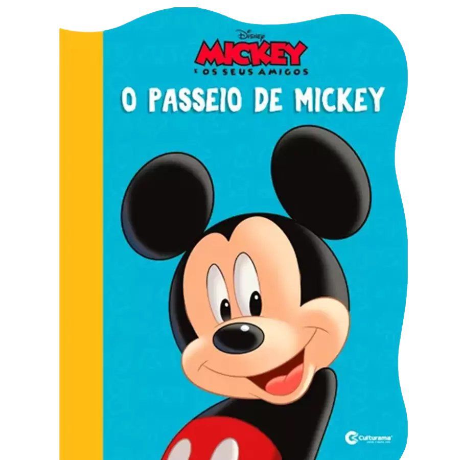 Livro ilustrado inspirado no Mickey Mouse Disney, com capa fosca e verniz localizado. Formato recortado divertido, ideal para presentear e usar como lembrancinha de festa.