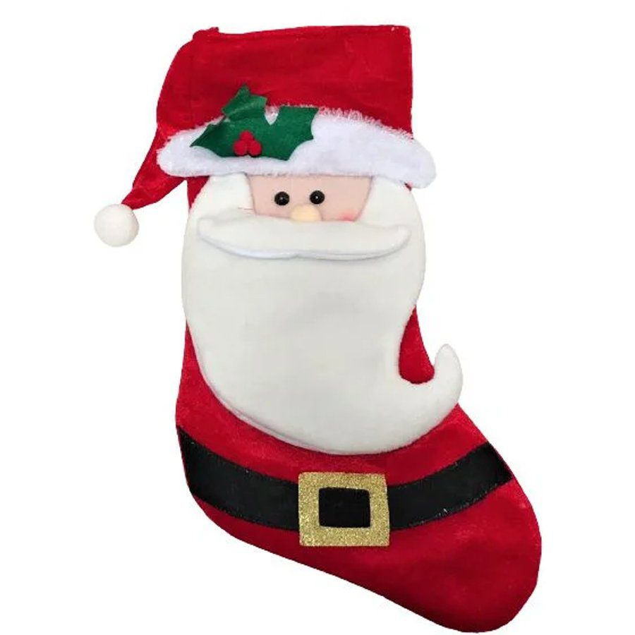 A meia contém ao todo 50 cm. Ela possui estampa do papai noel por toda ela com cinto em seu corpo.