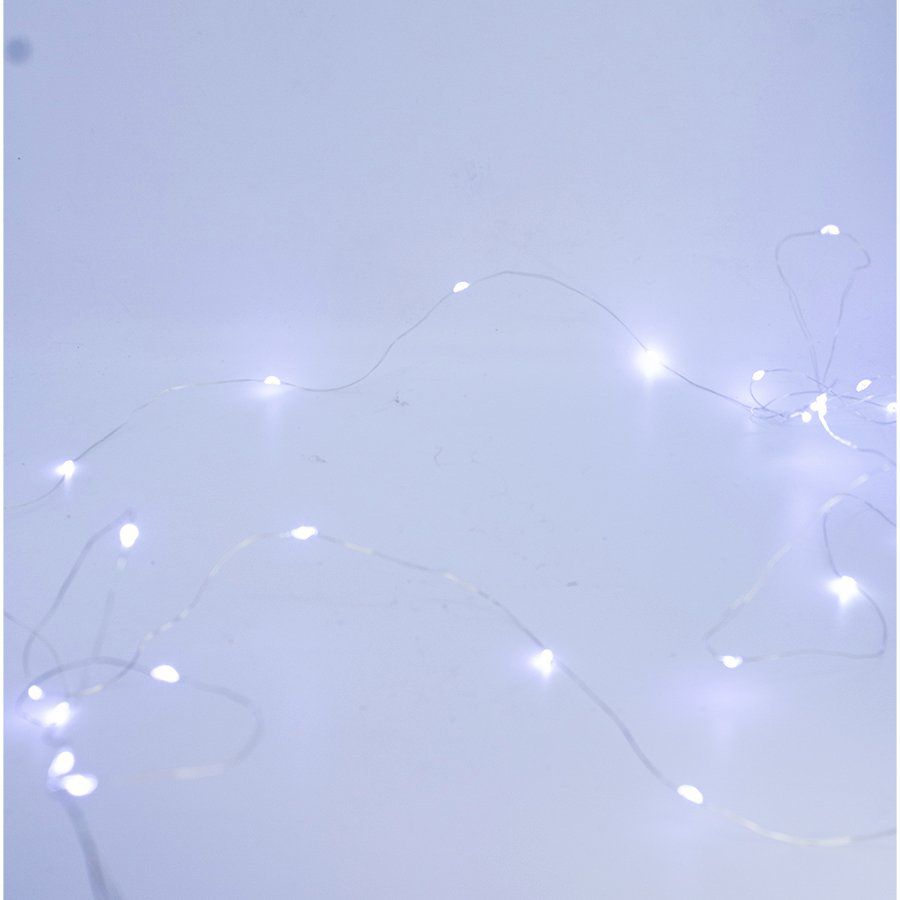Cordão de LED Não-pisca branco, de 3 m de extensão. Fios fininhos e mini-LEDs. Funciona a 2 pilhas AA não inclusas.