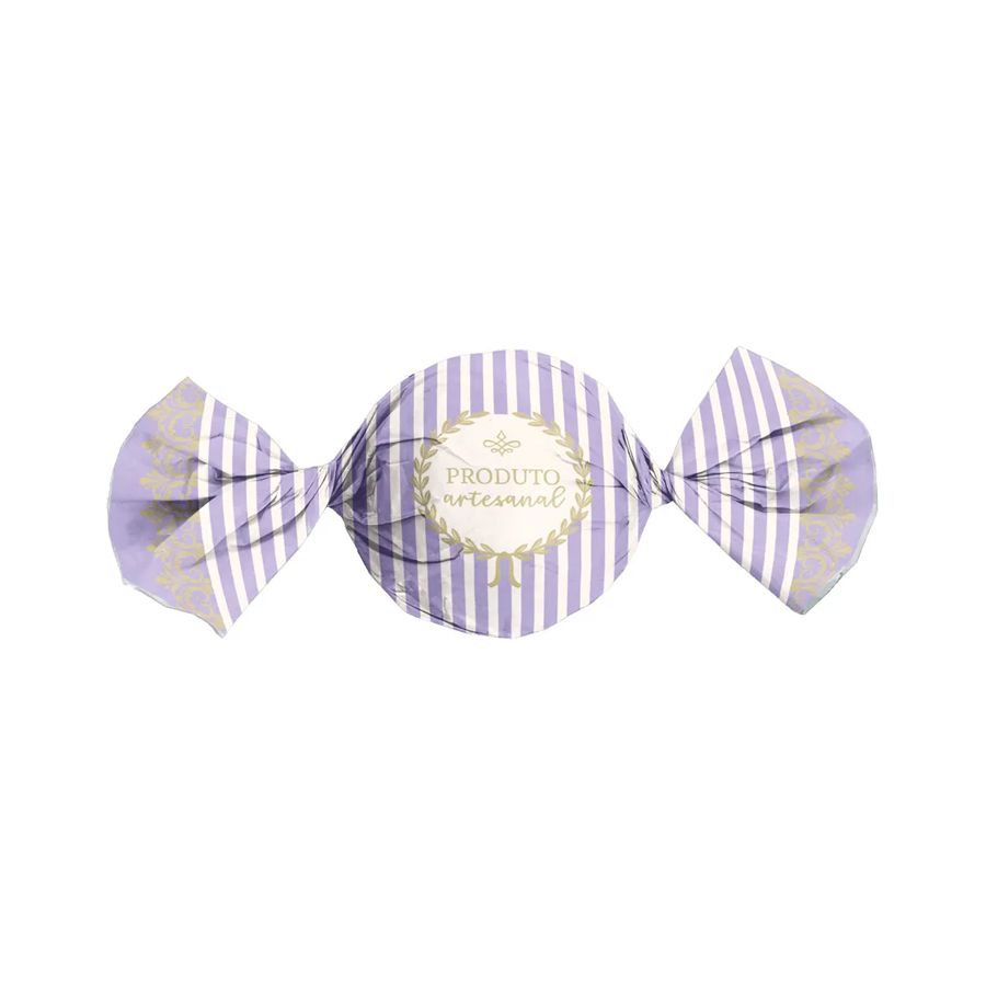 Papel laminado para trufas e bombons, na cor candy lilás com listras.